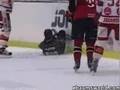Description: A hockey ref gets run into and slams into the boards while upside down. The glass shatters on impact. Video courtesy of ebaumsworld.com |